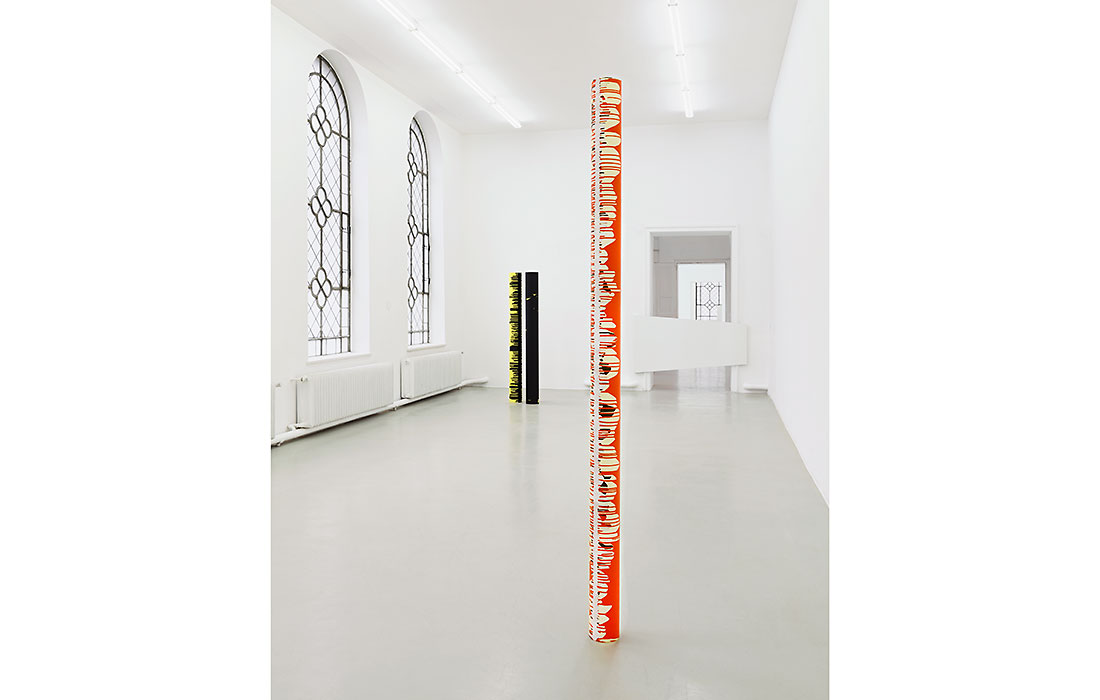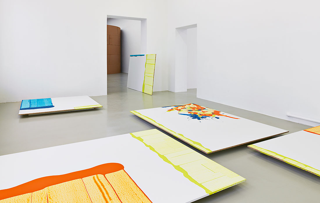 Tilo Schulz has developed a new, site specific installation which breaks the linearity of the circular course of the exhibition spaces and occupies the passages between the exhibition rooms. The sculptures and architectural interventions can be walked through and form the transition into the next room. The last room is blocked, can not be entered but looked into; this forces the visitors to walk through the whole exhibition again. The sculptural interventions contrast not only the reserved, functional architecture of the exhibition rooms in the Kunstverein, but also reverse the behaviour and function of exhibition space and the transition from one room to the other: the exhibition space becomes a passageway and the spaces between the rooms becomes a space for art and experience.
